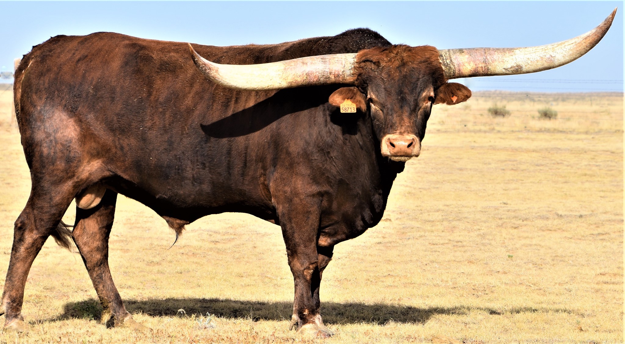 He is still putting muscle and horn. As of Oct 2020 He has won eleven HORN MEASURING championships and now weighs over a TON, with ttt 81.75" and total horn of 109.5" He has been easy to work around and is a solid breeder